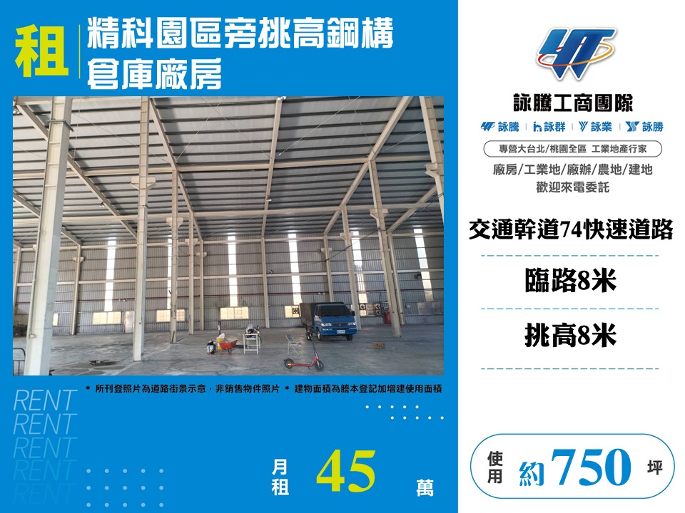 案名 ►►►台中精科園區旁挑高鋼構倉庫廠房