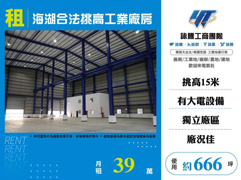 案名:海湖合法挑高工業廠房