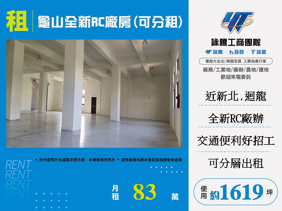 龜山全新RC廠房(可分租)
